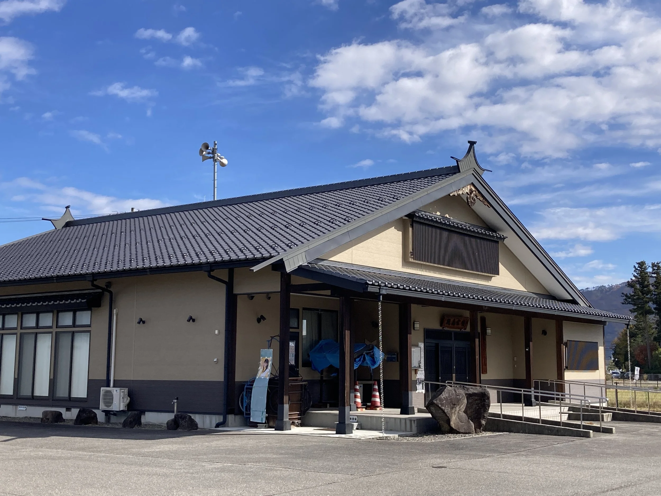 こちらは地域の公民館です。雀踊りの棟飾りの