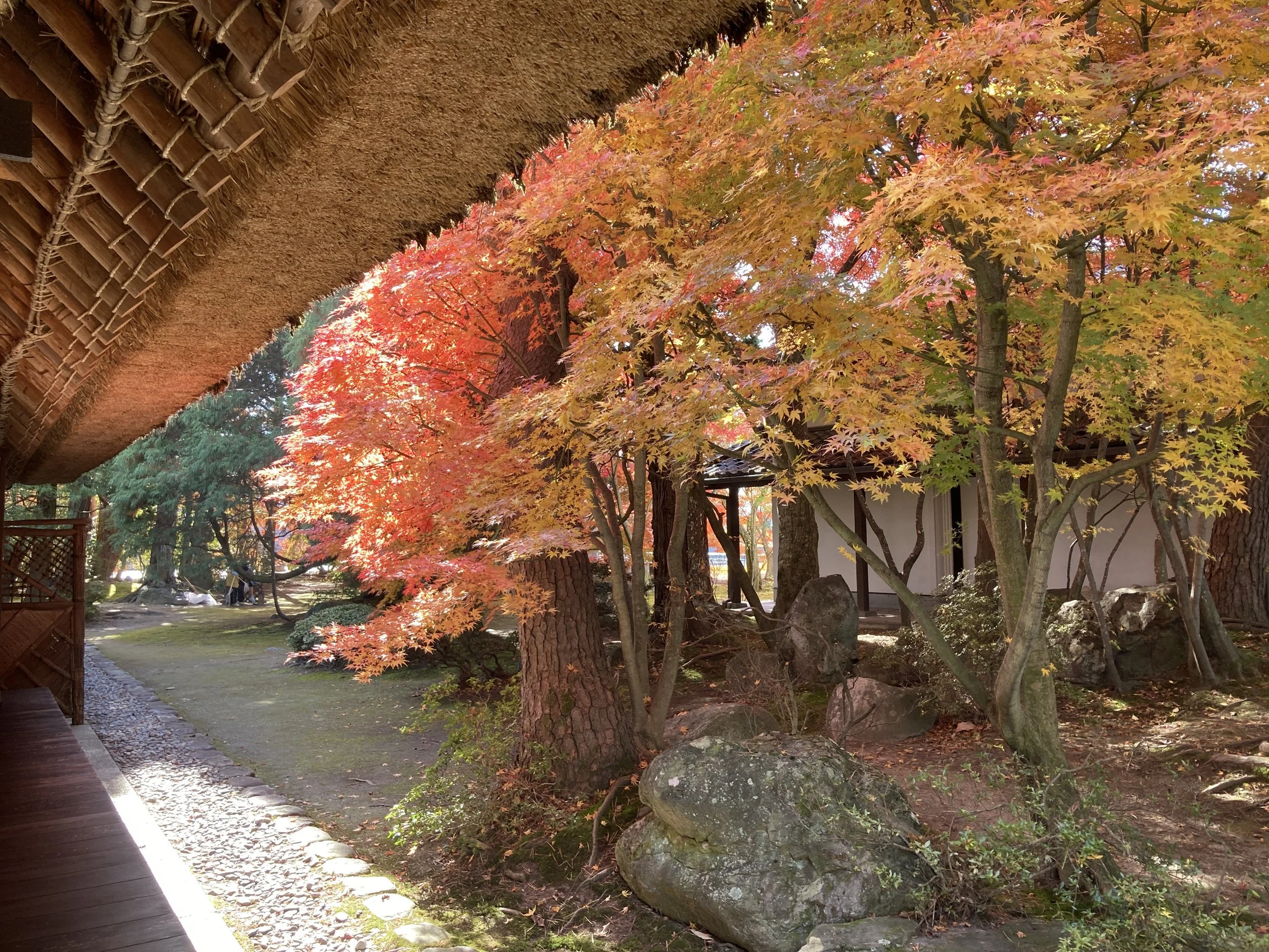 された庭の木々の紅葉は今が見頃で、室内か
