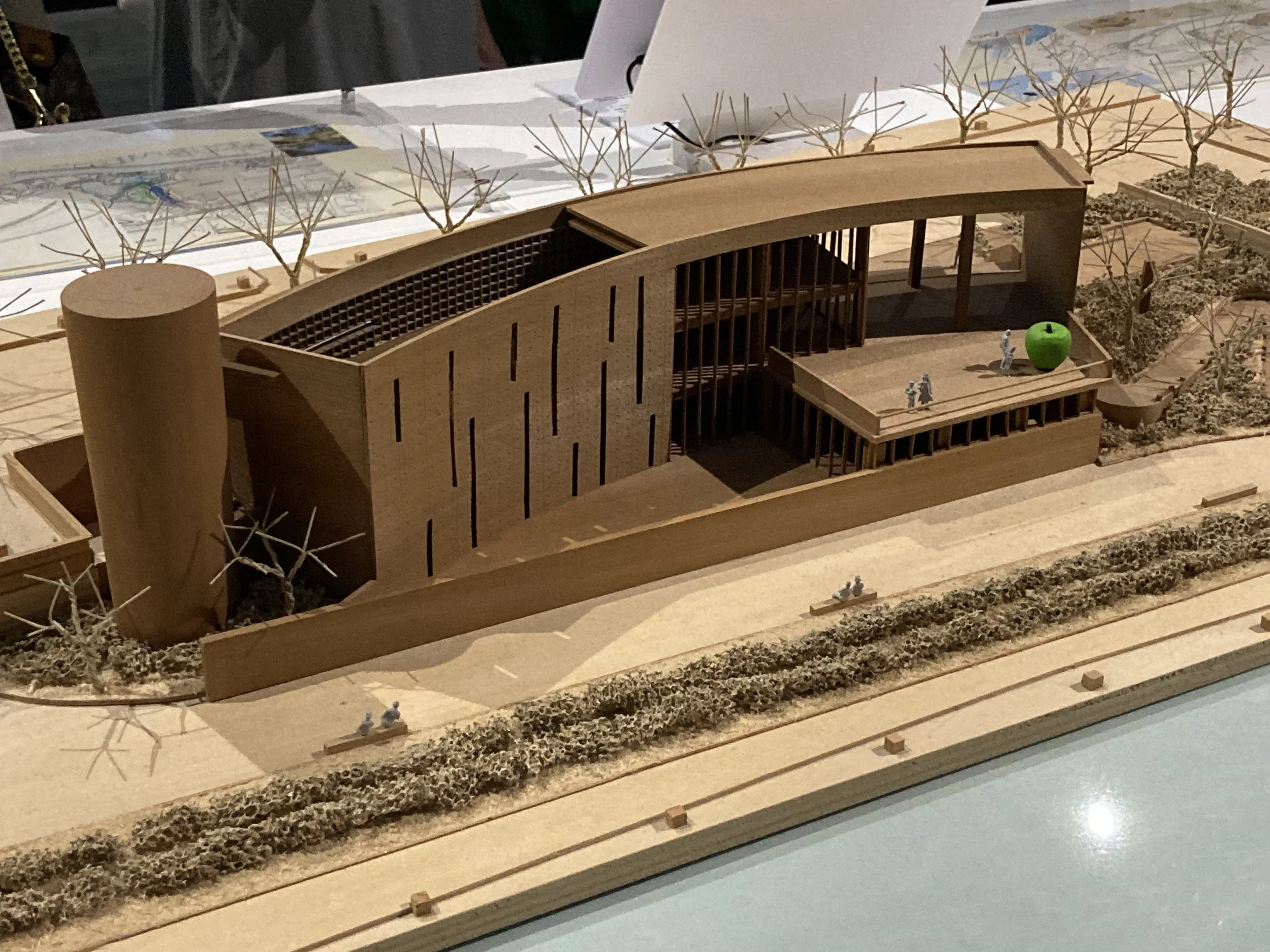 展示は図面、スケッチ、模型、動画が中心でし