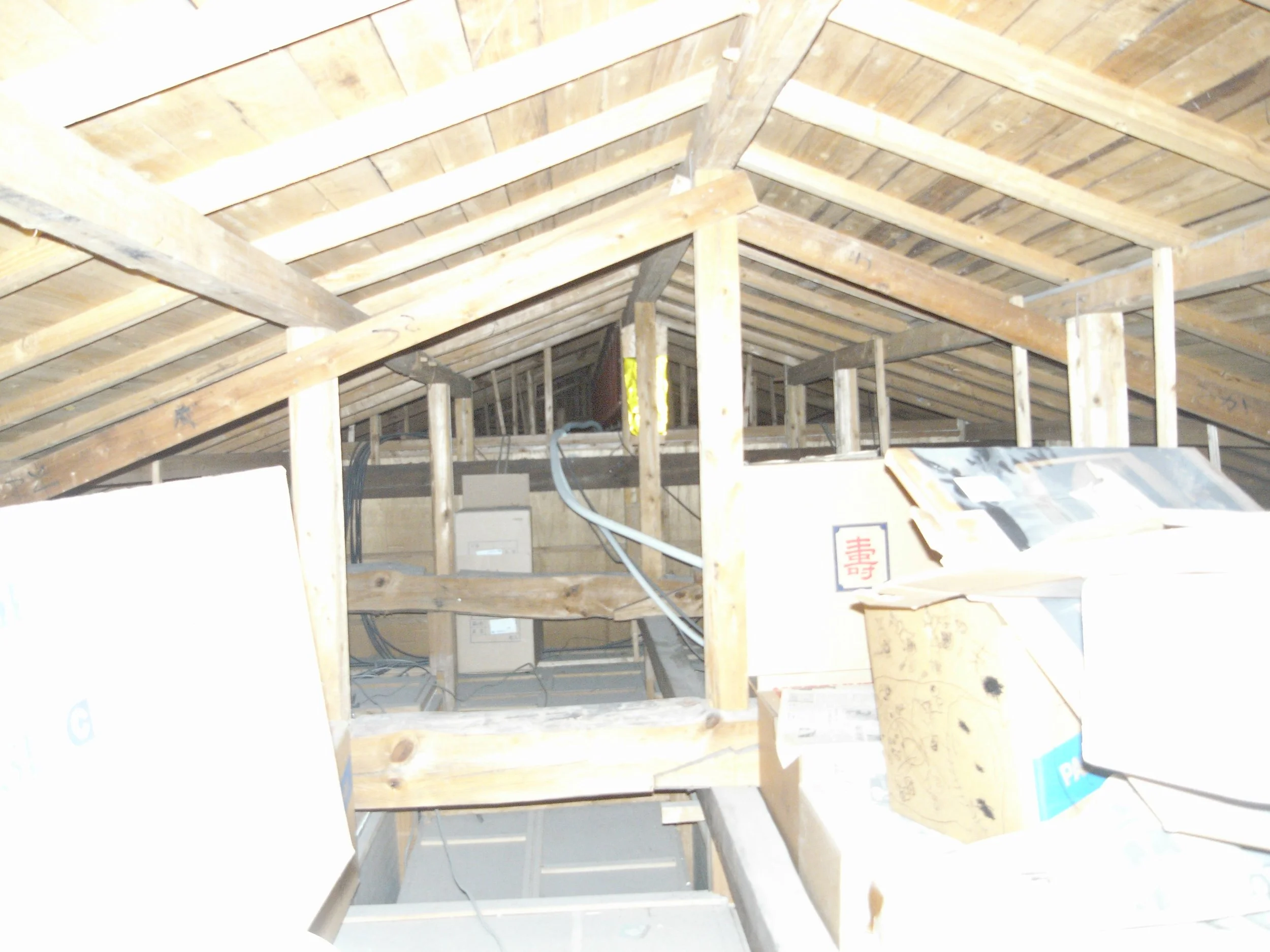 写真は、天井裏の調査に上がった時の写真で